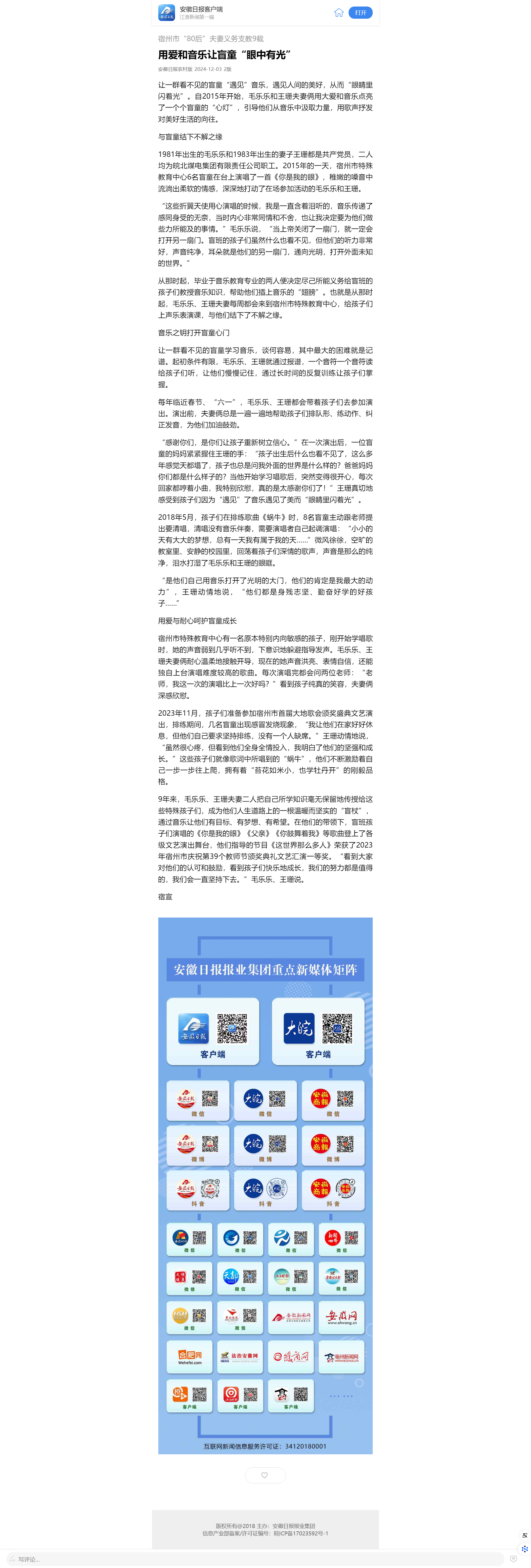 12月3日安徽日報客戶端:用愛和音樂讓盲童“眼中有光”